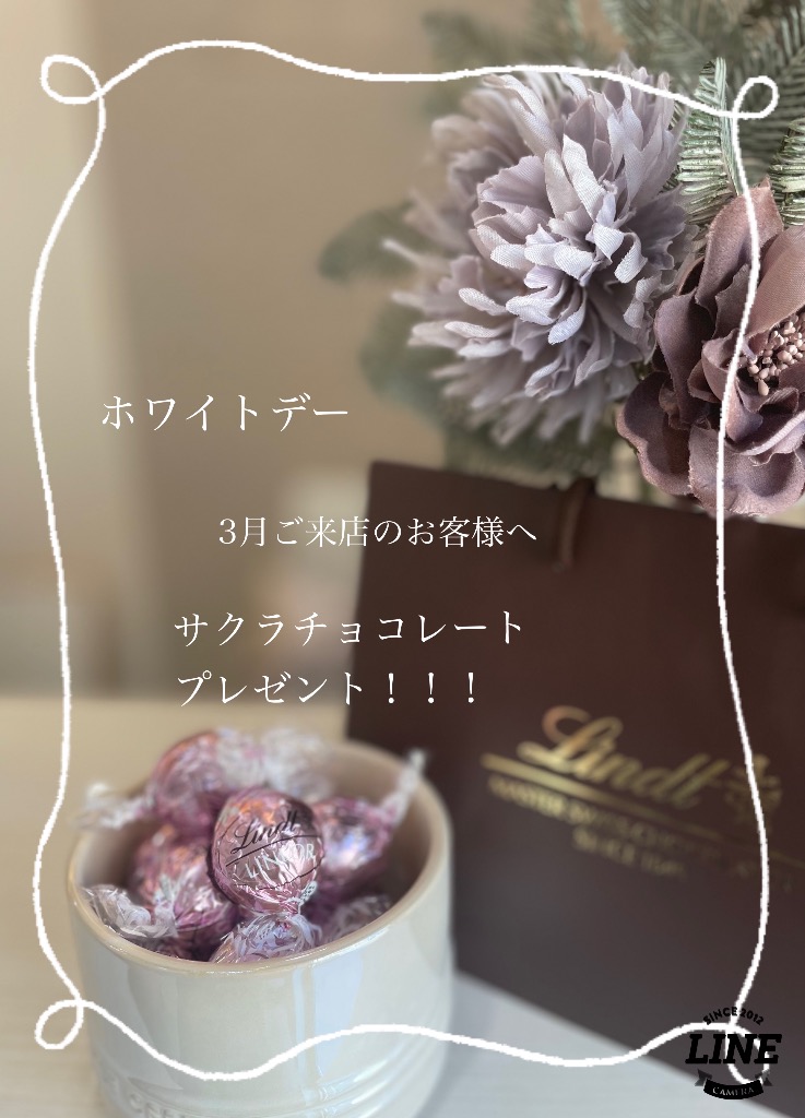 3月ご来店いただいたお客様へ春限定サクラチョコレートをプレゼント致します♡