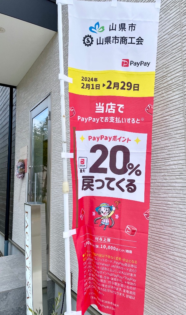 山県市当店でPayPayでお支払いすると最大 20%還元されます✨✨
