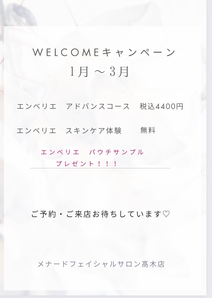 1月〜3月welcomeキャンペーン